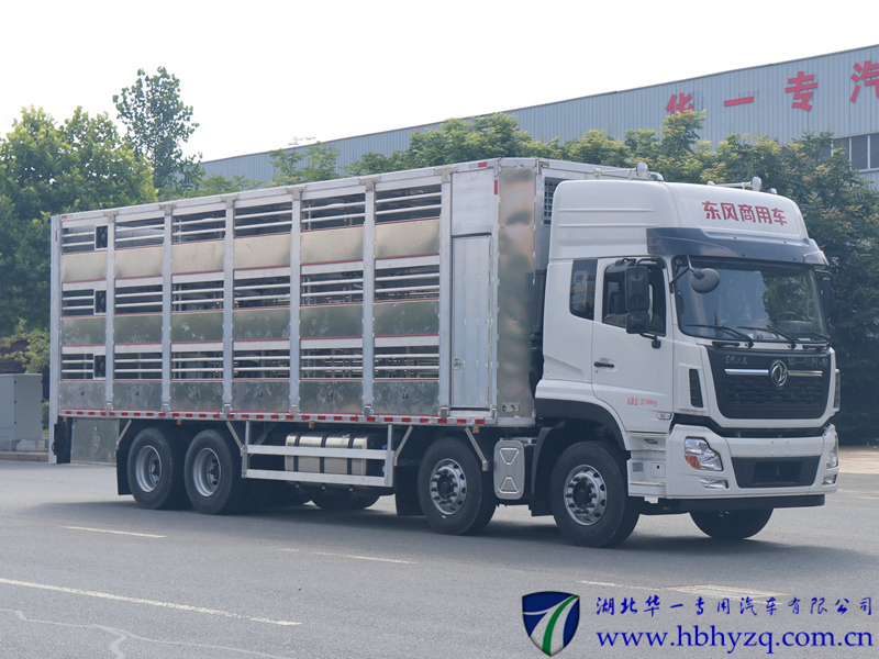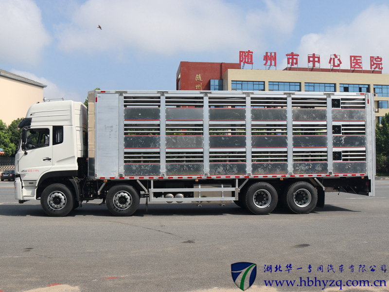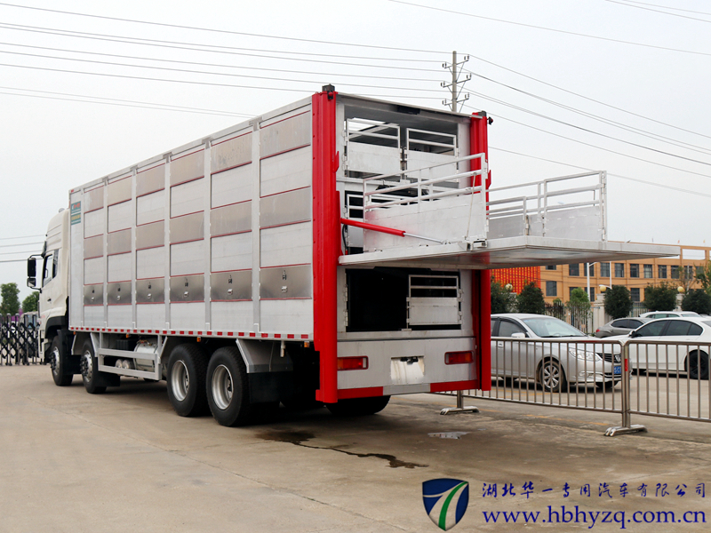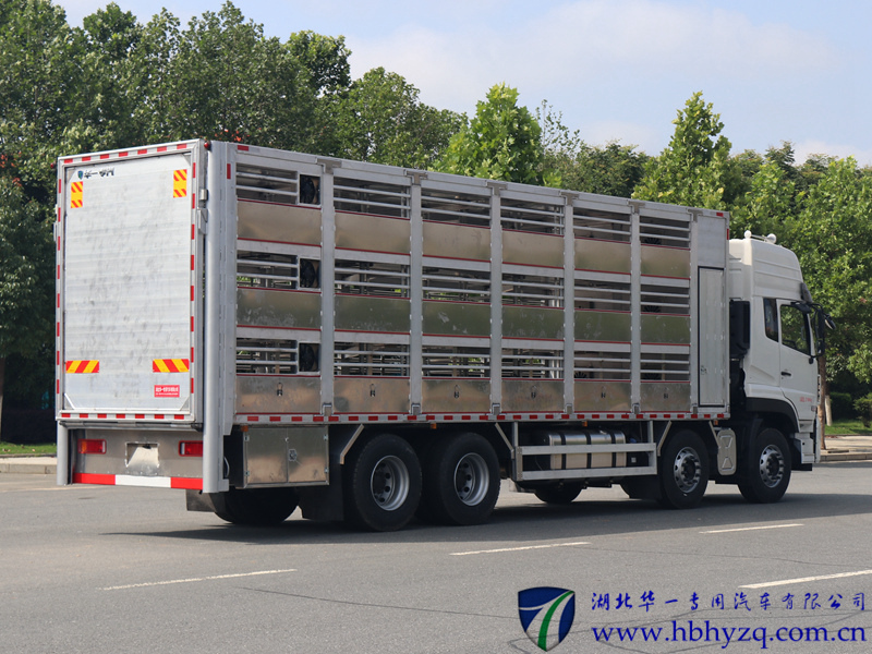 车辆后部装有液压尾板,液压尾板收起状态的水平长度为280mm,液压尾板重量550kg;随底盘选装驾驶室,选装两层、三层、四层仓栅结构,选装箱体前部不带单开门结构和封板结构;选装前部带空调结构;箱体两侧开窗,中间有隔栏;货箱底板到仓栅顶部 的高度为2600mm;整车长/轴距/后悬对应关系(mm):12000/1850+4600+1350/2700,12000/2050+4400+1350/2700,12000/1995+4600+1350/2555;侧防护材质:矩形铝合金型材6061-T6,连接方式螺栓加焊接连接;后防护装置材料为Q235,连接方式焊接加螺栓连接,断面尺寸(mm) 为:120×80,离地高度为:500mm;ABS生产厂家:东科克诺尔商用车制动系统(十堰)有限公司,型号:3631010-C2000;安装带有卫星定位功能的行驶记录仪;发动机ISL9.5-315E51A,ISL9.5-340E51A,ISL9.5-360E51A,ISL9.5-400E51A,dCi350-51,dCi385-51,dCi420-51,dCi450- 51,dCi465-51,DDi75S315-50,DDi75S350-50对应的油耗值均为37.3(L/100Km);该车专用装置为箱体和液压尾板,主要用于畜禽运输,该车型可选装ETC车载装置. |