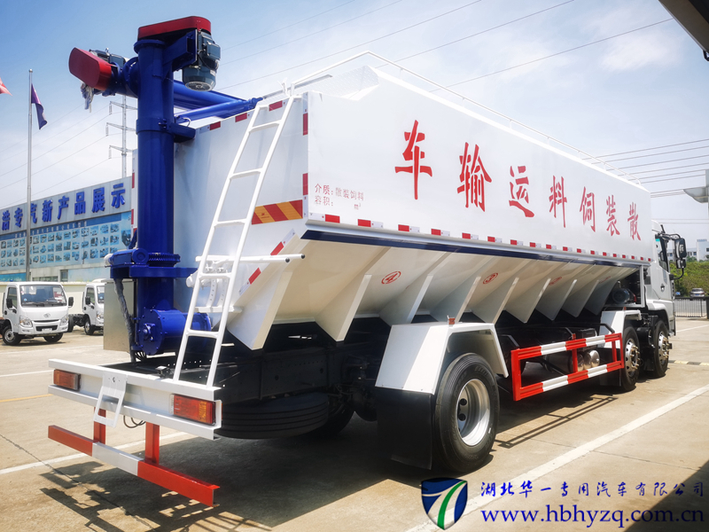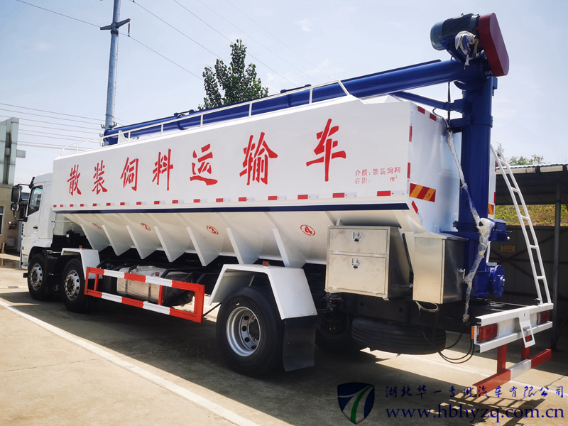 可选配置:此散装饲料运输车可根据用户实际情况选择电动绞龙式(三相电380V配套场所)或者液压式绞龙(无三相电场所),也可装载独立发电机组。可加装摇控器 ,个人可独立完成操作,自由回转或抬升。电动绞龙式散装饲料车针对不同客户群最新研发的、满足市场的新产品,电动绞龙接三相380V来供电。该车性价比高很受客户的青睐,采用机械螺旋的卸料方式,卸料速度快,可连续作业,大大提高生产效率。